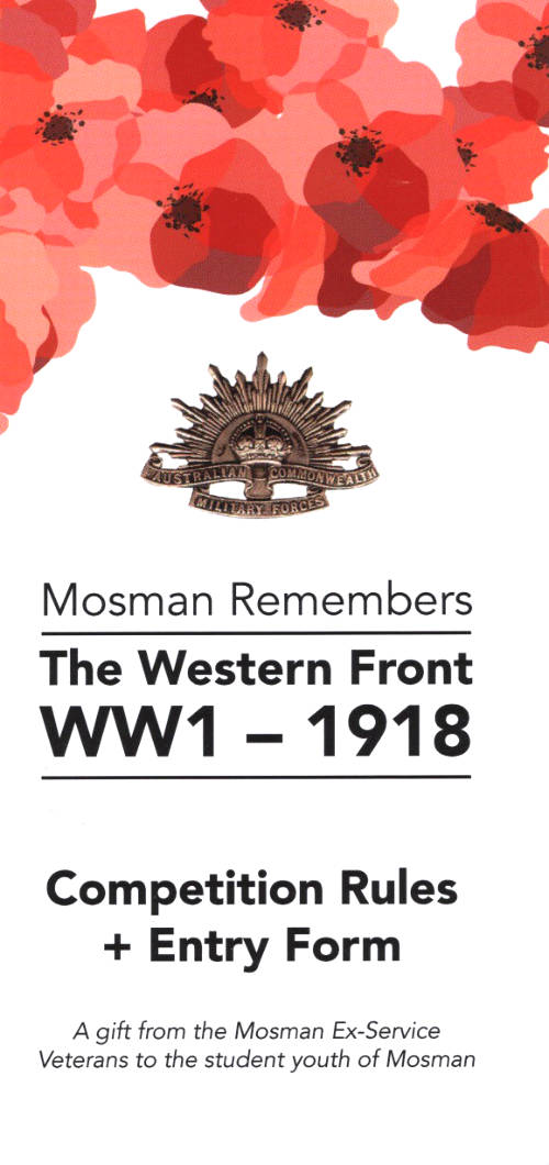 In 2018, to commemorate the centenary of The Armistice, The Trust introduced a literary competition ” Mosman Remembers The Western Front WW1 – 1918″ for high school students either resident in or schools located in Mosman. The theme of the competition was “Remembering World War 1 and the Mosman people at the time”. The winning entry prize was an all expenses paid (including airfares, accommodation, meals and ceremonies) Australian Battle field Tour, accompanied by parent or guardian, between 31 October – 13 November 2018. The winning entrant was Margarita Dowd, aged 13 from Mosman High School. Margarita’s submission was on David Samuel Anderson who lived at 21 Holt Avenue, Mosman and fell at the Battle of Fromelles on 19/20 July 1916, Australia’s greatest tragedy where there were 5,533 casualties from the 5th Division. Five other finalists each received the two volumes of David Cameron’s “Australians on the Western Front: 1918” published in 2018. The presentation ceremony was conducted at Mosman High School on 21 September 2018. Photos of this ceremony appear in the News Section of this website. On return home, Margarita prepared a report of the tour and addressed the Mosman Ex Service community. This presentation is also on the News Section of this website. Finalist’s submissions have been retained by The Trust for publication in media outlets.